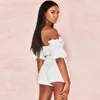 Two Piece Set Women Off Shoulder Puff Sleeve Short Crop Top High Waist Wide Shorts Tracksuit Sexy Conjunto Femenino 2 Piece Set