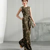 2020 Women Summer Jumpsuit Party High Street Chiffon Elegant Wide Leg Print Floral Rompers with Sashes Plus Size 3XL 4XL