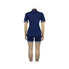 Summer Denim Jumpsuit For Women Blue Short Sleeve Shorts Rompers Fashion Elastic Lapel Button Slim Fit Jumpsuit Ladies Vestidos