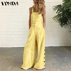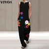 Rompers Women Jumpsuits 2021 VONDA Female Casual Wide Leg Pants OL Party Overalls Sexy V Neck Lapel Neck Print Playsuits