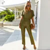 Jumpsuit Women 2020 Summer Short Sleeve Fashion Solid Casual Overalls Autumn Office Lady Straight Leg Rompers Women's Jumpsuit