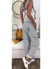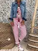 Women Flower Print Loose Jumpsuits Rompers V-neck Herem Pants Sport Slacks Suspenders Hip Pop Sport Slacks Lace up Full Length