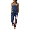 2020 New Summer Women Long Jumpsuits Fashion Flowers Printed Jeans Romper Casual Floral Pocket Playsuit Washable Denim Overalls