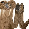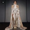 Female man Singer Stage Wear Printing tiger Stretch Jumpsuit Long Cloak Outfit Dancer Models prom nightclub drag queen costumes