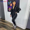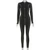 HAOOHU women full sleeve fitness skinny Jumpsuits zipper o-neck patchwork elastic hight slim sportswear female streetwear outfit