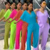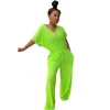 Neon Green Plus Size Rompers Women Jumpsuit Deep V Neck Short Sleeve Loose Bodysuits Casual Elastic High Waist One Piece Overall