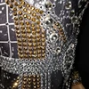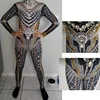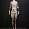 Rhinestone Crystal Jumpsuit Long Sleeve black womens Spandex Nightclub Prom Party Outfit Singer Jazz Dance Stage rave Costume