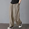 2021 New Harem Pant Hemp Bloomer new S-2XL Loose Women Trouser Cotton Linen Pleated Oversize Pockets Wide Leg Pant