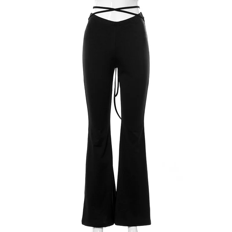 y2k Punk Bandage Fashion Women Straight Pants Solid Elastic High Waist Slim Long Trousers Summer Streetwear Outfits Pantalons