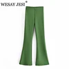 WESAY JESI Fashion Women's Pants Vintage Slim High Waist Solid Autumn Full Length Flare Pants Woman Clothes Trousers Street Wear