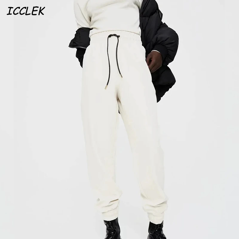 Women's Pants Jogger Pants High Waist Harem Pants Female Jogging Sweatpant Elasticated Trousers Loose Streetwear White Winter Za