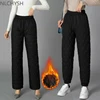 Women Winter Warm Down Cotton Pants Padded Quilted Trousers Elastic Waist Casual Trousers