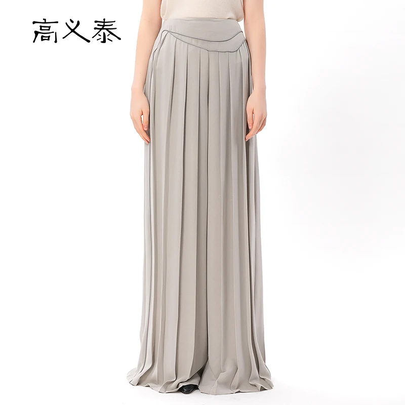 GAOYITAI Elegant Pantskirt Solid Trousers Autumn Culottes Office Ladies Loose Sweeping Pants Long Pleated Wide-leg Pants KY003