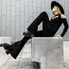 Goth Dark Mall Gothic Grunge Women Flare Pants Punk Black High Waist Bodycon Trousers Zip Up Streetwear Emo Alternative Clothes