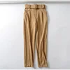 Women's Pants High Waist With Belt Classic Pockets Office Lady Ankle-length Trousers Female Spring Fashion Pink Harem Pants