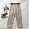 Autumn Suit Pant Women Casual High Waist Loose Ankle Length Fashion Trousers Pants With Belt Female Gray Black Khaki Bottoms