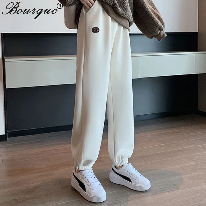 Women Sweatpants Fleece Solid Color Plus Velvet Thickening Warm Winter Streetwear Fashion Cropped Trousers Female Sport Pants