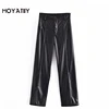 MOYATIIY Women 2022 Fashion PU Leather Wide Leg Pants Highstreet Shinny Black Loose Trousers with Zipper Female Bottoms