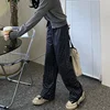 Estceque Summer Women Pants Straight Loose Slimming Elastic Waist Stitching Casual Street Wear Female Bottoms Trousers