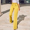 2021NEW 2021 Autumn Casual Women Trousers Fashion Leggins Houndstooth Print Buttoned High Waist Wide Leg Tailored Pants