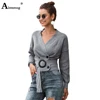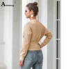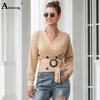 Women Crop Top Sweaters Autumn 2020 Casual Sashes V-neck Lace-up Cris Cross Knitted Sweater Femme Winter Warm Clothes Cardigans