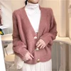 Golden Shiny Button Single Breasted Woolen Women 2021 New Cardigans Sweater Casual Female Warm Elegant Coat cute sweater 936i