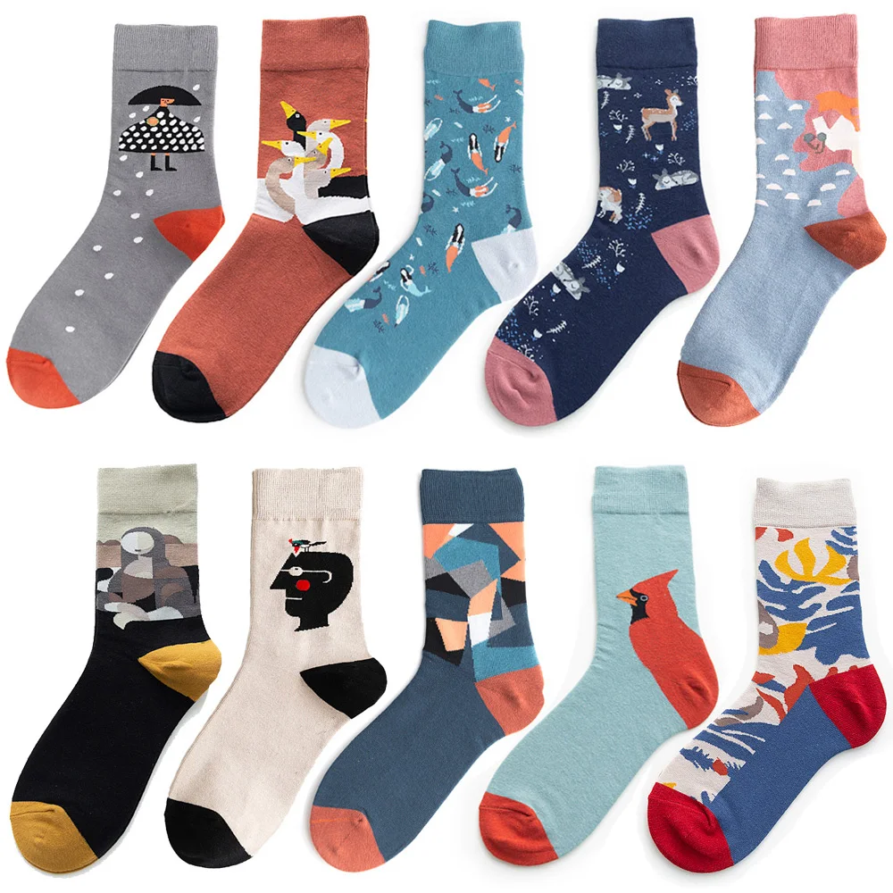 5 Pair/Pack Painting Men Socks Cotton Unisex Crew Designer Socks Men Streetwear Size 37-44 Free Shipping