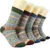 5 Pairs Womens Mens Retro National Style Winter Thermal Socks Warm Soft Wool Thick Nordic Sock Medium Tube Thick Socks Men