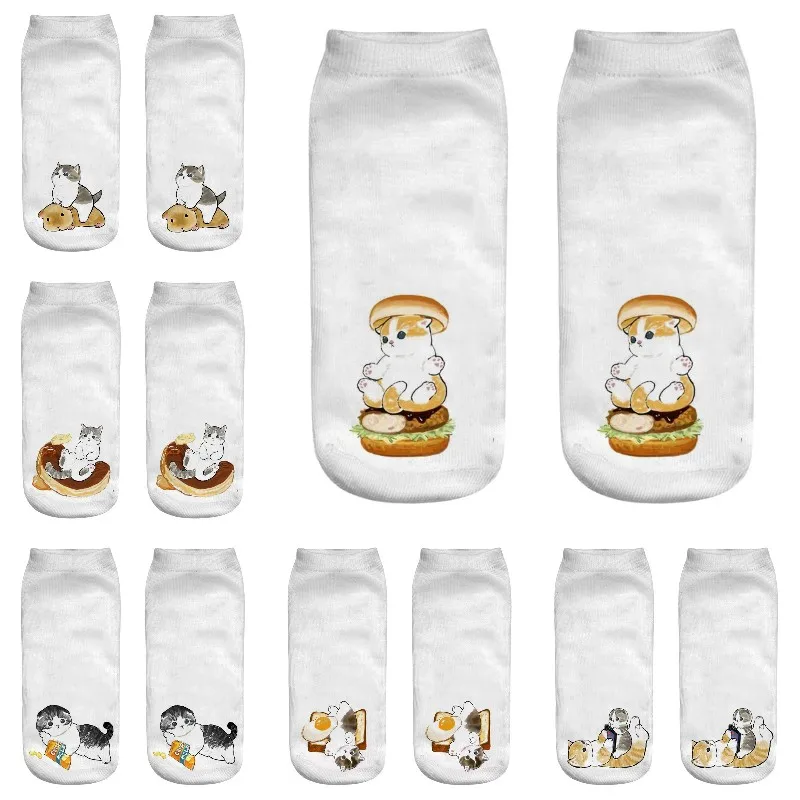 New Fashion men's funny socks Kawaii women's personality Cute Cat socks cartoon Solid Color high quality 3D printing pattern