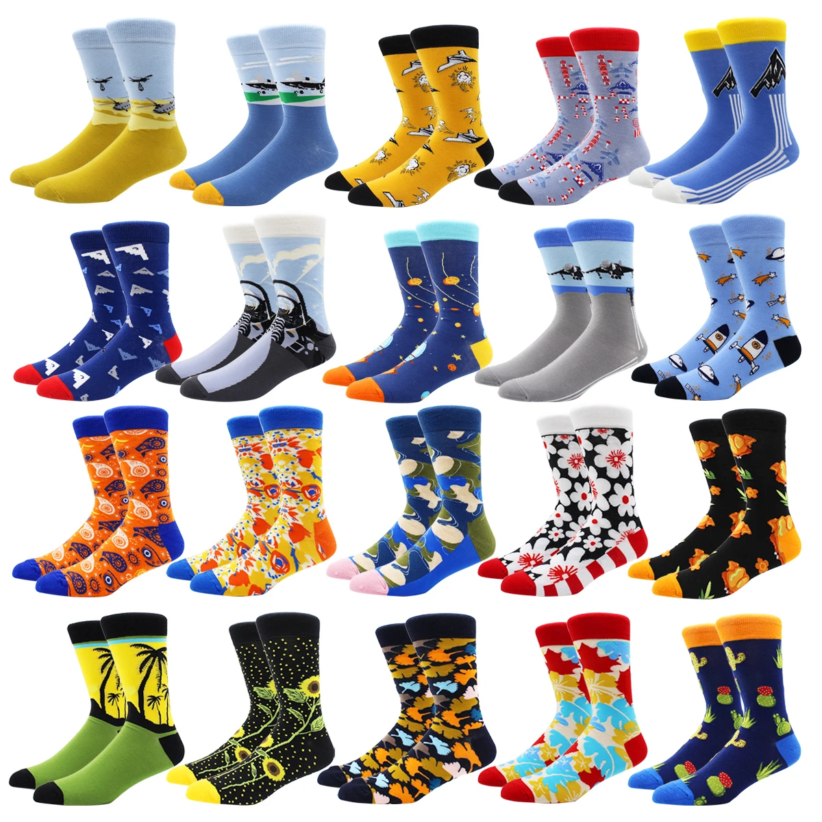 Fashion Casual Women and Men Socks Flower Plane Combed Cotton Funny Socks Dress Cotton Crew Casual Crazy Winter Thick Socks Mens