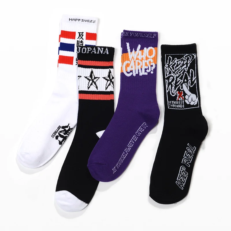 Autumn and Winter Women's Crew Socks Cotton European and American Letters Stars Fashion Harajuku Men and Women Socks Pop Socket
