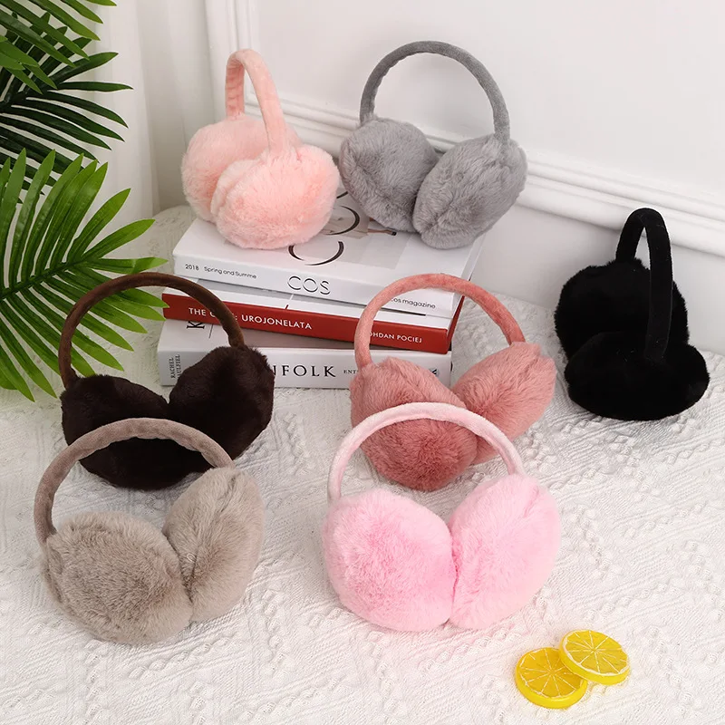 Fashion Solid Color Ear Cover Soft Earmuffs Women Thicken Plush Ear Protector Warmer Winter Man Faux Fur Earmuff