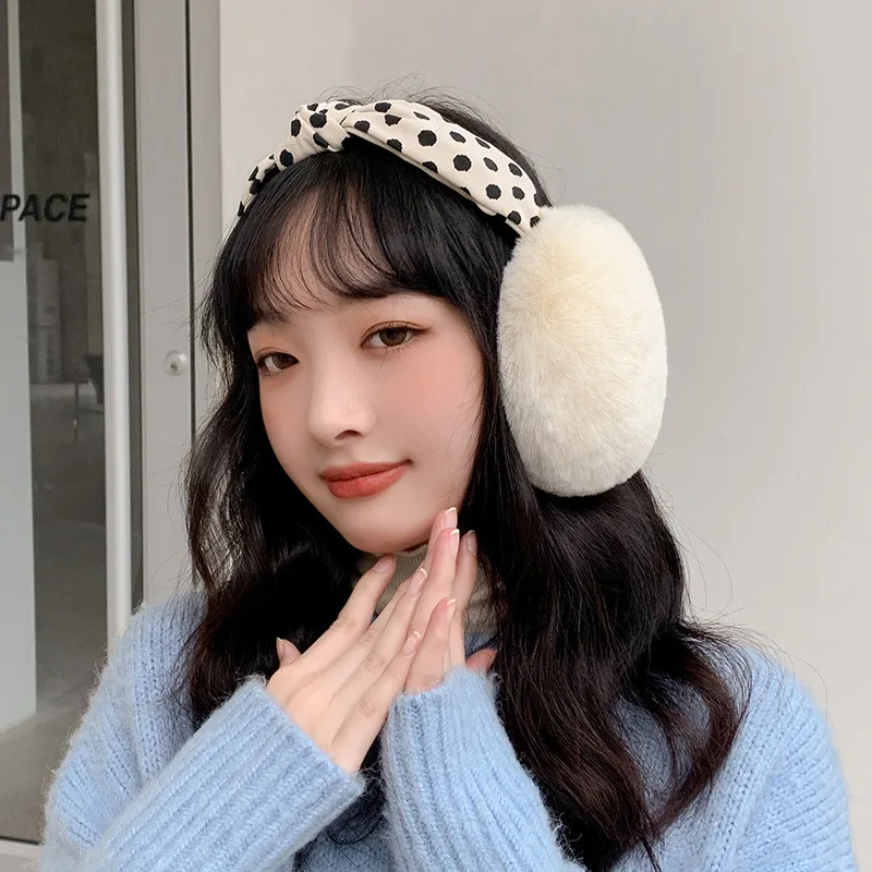 Dot Fashion Warm Earmuffs Cute Plush Fur Headphones Fashion Unisex Ear Warmer Solid Color Girls Headband Ear Muff Ear Cover