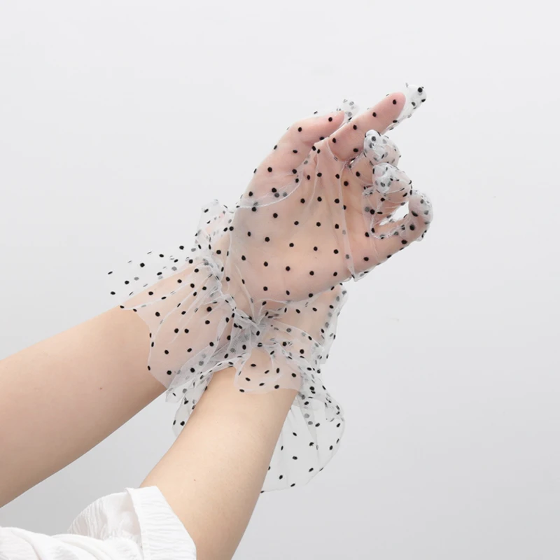 1 Pair Sexy Lace Gloves Dot Fashion Driving Women Short Tulle Stretchy Lotus Leaf Sheers Flexible Mesh Wedding Full Finger Glove