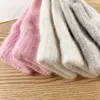 1 Pair Women Girls Gloves Double Layer Short Fur Mittens Thicken Knitted Mittens Solid Color Soft Warm Full Finger Gloves