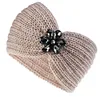 Autumn And Winter New Hair Accessories Rhinestone Flower Knitting Wool Hair Bands For Women Europe And America Popular Keep Warm