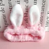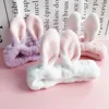 Cute Flannel Bunny Ears Elastic Hair Band Headbands For Women Girls Wash Face Makeup Headband Fashion Kawaii Accessories