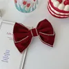 Flannel Big Bow Hairpin Retro Rhinestone Spring Clip Hair Accessories Europe And America Pearl Hair Clips