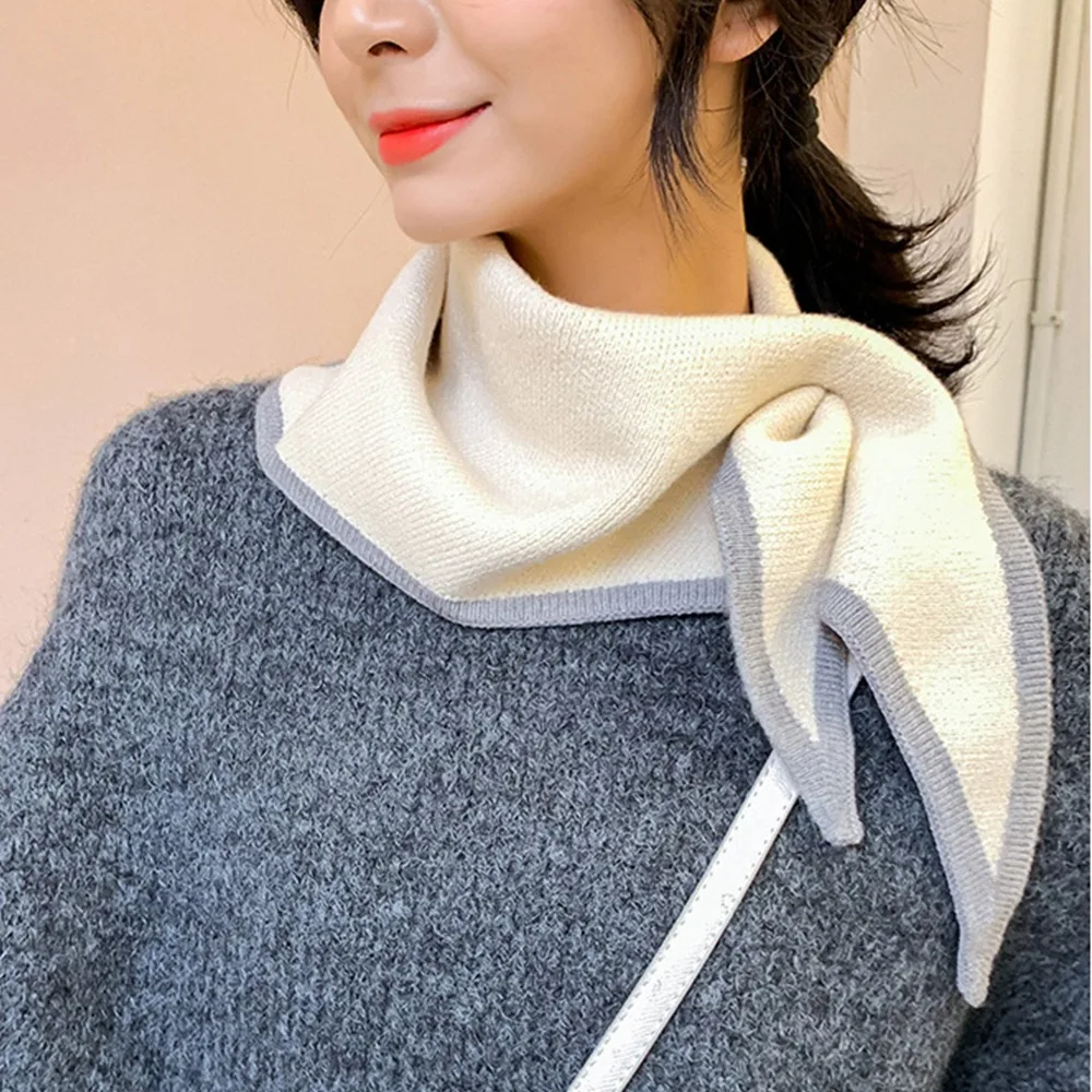 Women Triangular Scarves Winter Woolen Knit Elastic Bow Cross Warm Scarf Female Solid Color Soft False Collar Neck Guard Bib