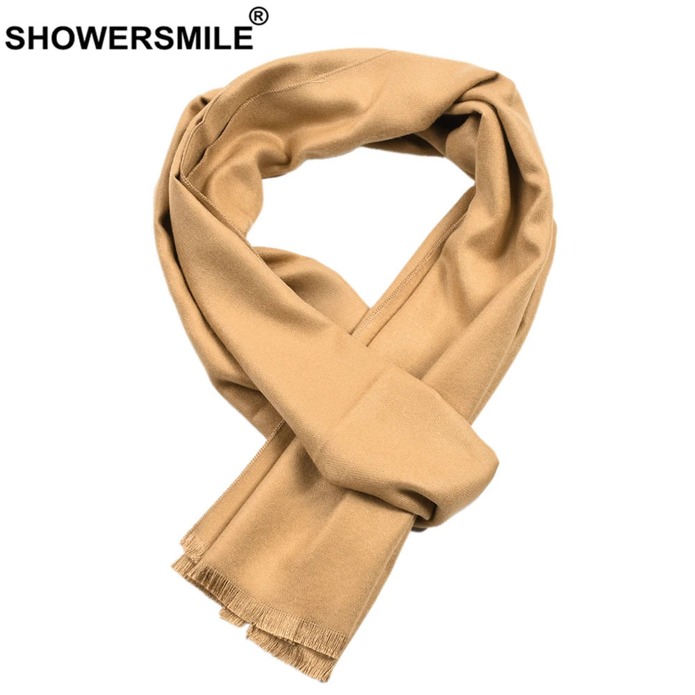 SHOWERSMILE Winter Scarf Men Solid Cashmere Scarves Tassel Khaki Black Red Gray Navy Scarf for Men 30cm*180cm