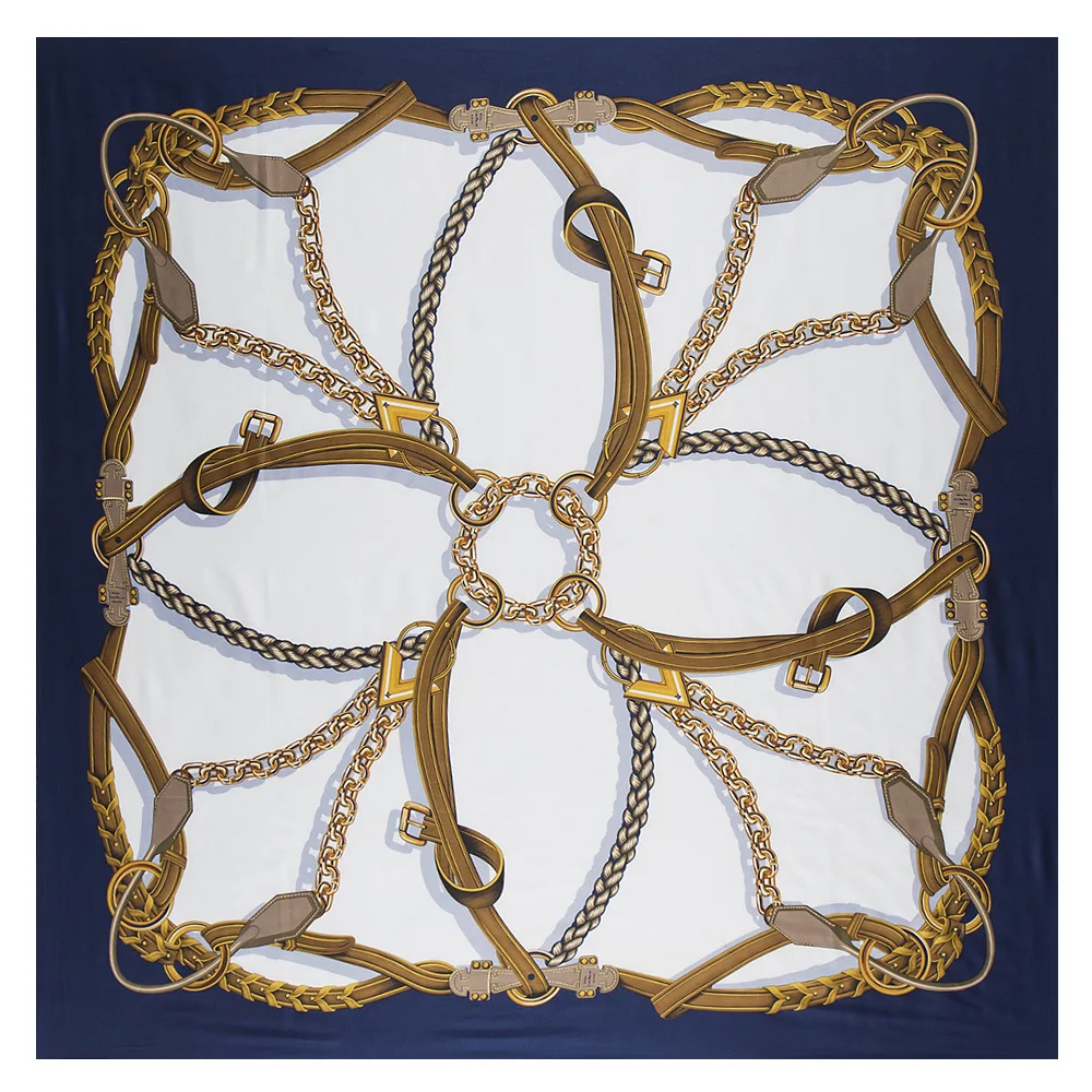New Belt Chain 130cm Square Scarf Luxury Brand Scarves For Ladies Twill Silk Scarf Woman Kerchief Shawl Echarpe Tuaban