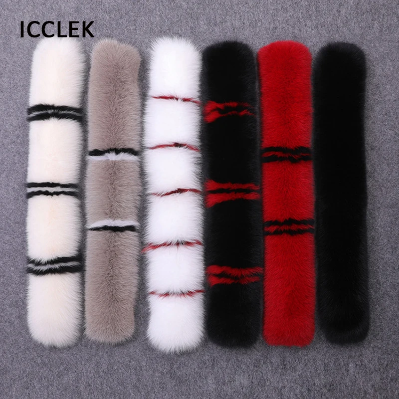 100% Real Fox Fur Collar Coat Fur Hat Strip Winter Coat Jacket Fur Collar For Women Female Neck Cap Long Warm Genuine Fur Scarf