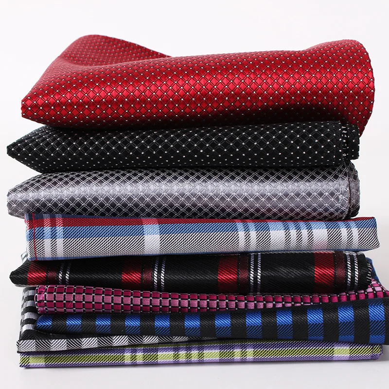 Men Handkerchief Silk 100% Woven Grid Stripe Pattern Men's Business Casual Square Pocket Handkerchief Wedding Hankies