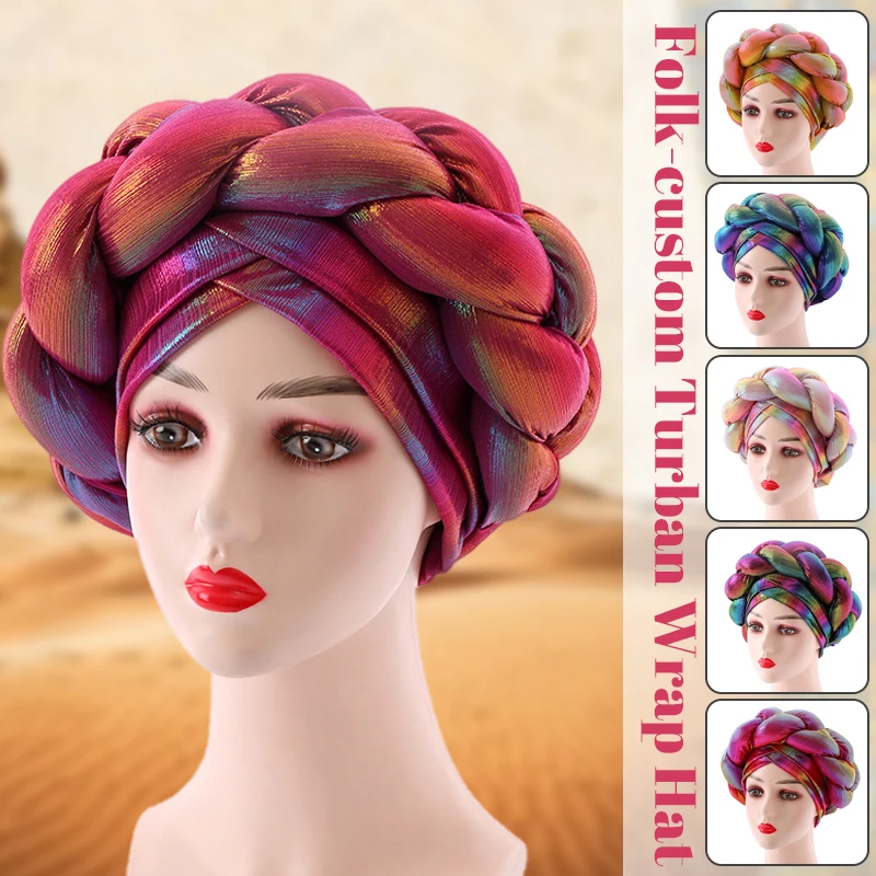 Women Muslim Hooded Cap Auto Gele Headtie Hijab Turban Cap Woven Hat Turban Wrap Hat Robe Africaine Design Bonnets African Hat