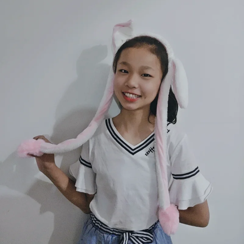 Plush Bunny Ears Hat Winter Women's Rabbit Hat With Moving Ears Cute Toys Earflap Airbag Cap for Kids Girls Lugs 2022 NEW Gift