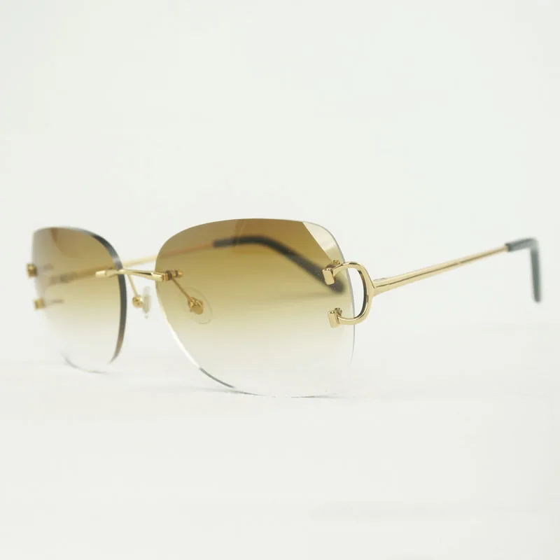 New Rimless C Wire Sunglasses Men Oversize Eyewear For Summer Diamond Cutting Glasses Metal Frame Oculos Gafas