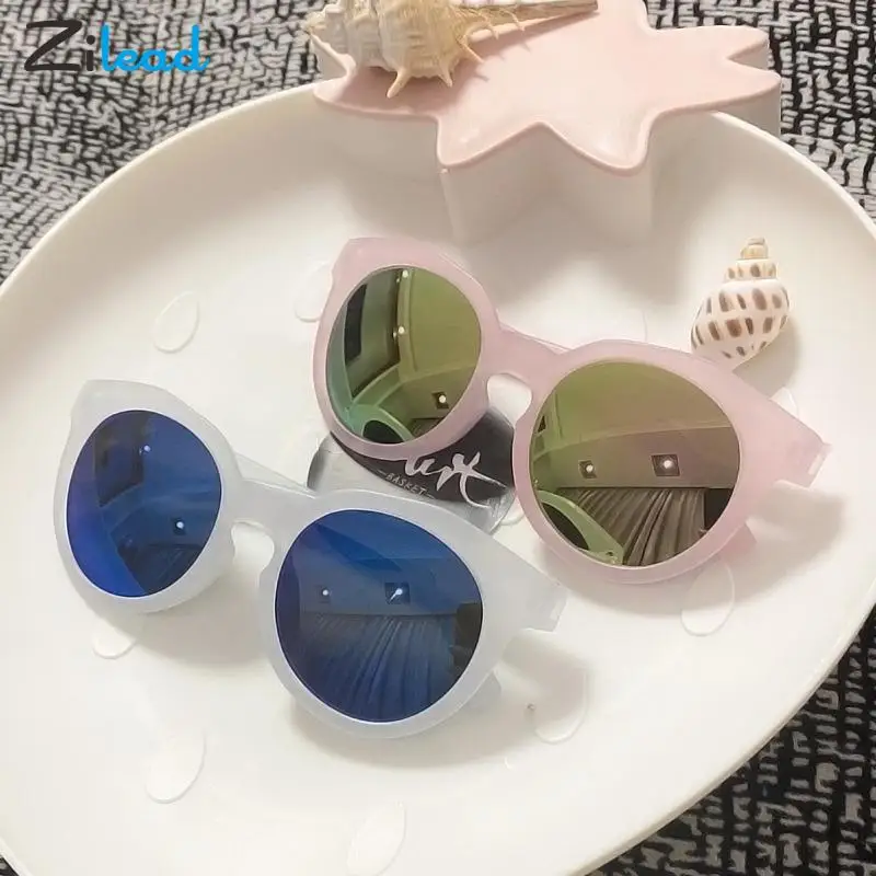 Zilead Fashion Jelly Color Children's Sunglasses Boys Girls Matte Frame Sunglasses Colorful Reflective Mercury Sunshade Glasses
