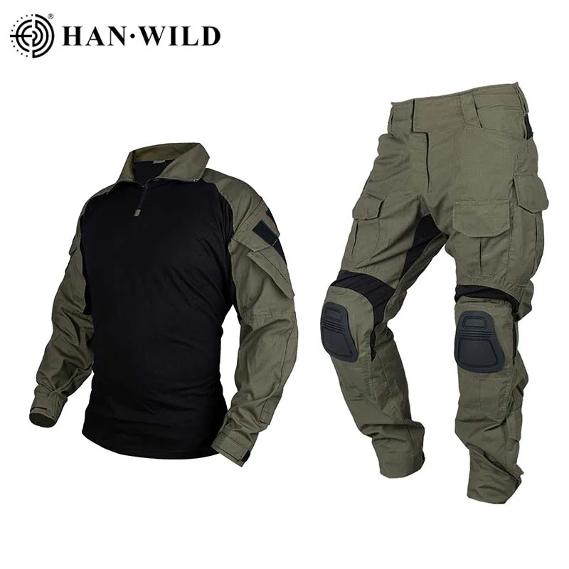 HAN WILD Tactical Tee Shirt Pants G3 Combat Suit with Pads Update Camo Airsoft Military Combat Hunting Multi-pocket Uniform