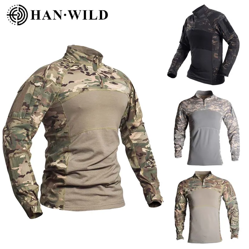 HAN WILD New mens Camouflage Tactical Military Clothing Combat Hunting Shirt Assault long sleeve Tight T shirt Army Costume