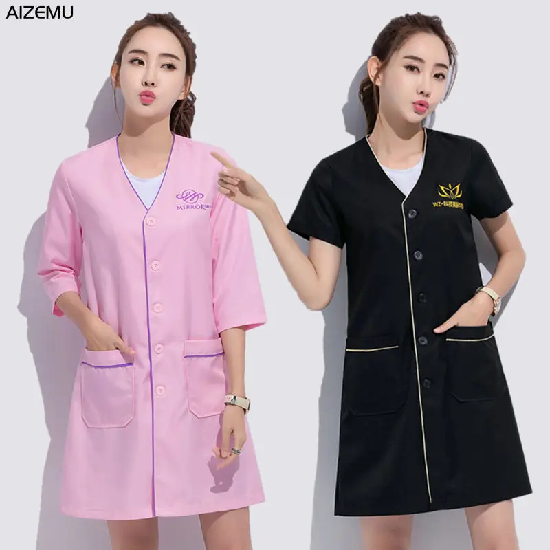 white plus size Salon grooming clothes Black short beauty uniform dress spa uniform scrub uniform Lab coat logo Beautician tops